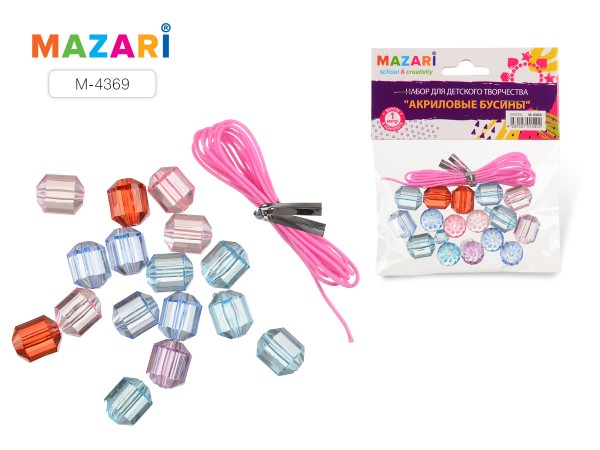 Набор д/детск. творчества "MAZARI. АКРИЛОВЫЕ БУСИНЫ TULY" бусины + эластичный шнурок, M-4393/24/576