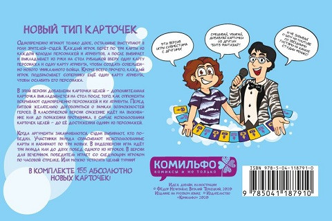 Трубите в горны, мастера невероятных выдумок! Назревает битва, в которой вашим главных оружием станет собственное воображение! Чтобы одержать верх над противником, вам потребуется прибегнуть к самым изощрённым идеям, что приходили в вашу голову. Никаких запутанных правил, никаких кубиков и игровых полей, никаких ограничений – только пара карточных колод и ваша фантазия! Основатель «Студии Феникс» Фёдор Комикс и комиксист Виталий Терлецкий объединили свои силы, чтобы создать самую необычную настольную игру, которую вы когда-либо видели. «Битва фантазий» – это лучший вариант блеснуть своими мозгодробительными затеями; каждая партия этой настолки ничем не похожа на предыдущие, поэтому будьте готовы ко внезапным поворотам, которые вам же и предстоит создать! Здесь лишь смекалка и чувство юмора влияют на исход сражения, а победа достаётся самым изобретательным!
