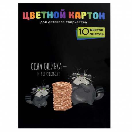 Картон цветной мелованный А4 10л 10цв. Феникс+ КОТ И ДЖЕНГА 69968/1/40