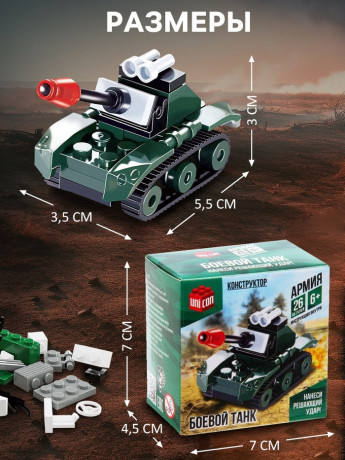 Конструктор "Армия. Боевой танк" UNICON, 26 деталей 1355191/1/480