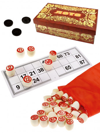 Лото — это популярная традиционная игра, которая поднимает настроение всем и каждому! Она прекрасно подходит для весёлой компании. Принять в ней участие может каждый! Главное — быть внимательным! Правила довольно просты: ведущий достаёт из мешочка по одному бочонку с числом и называет его вслух. Остальные игроки закрывают названные числа фишками для накрывания на своих карточках лото. Игра продолжается до того момента, пока у кого-нибудь из игроков не закроются все числа на одной из карточек. Этот игрок победил. Игра предназначена для 2-х и более игроков. Особенности: с золотым тиснением. Размер: 23x11x8 см. В картонной коробке.