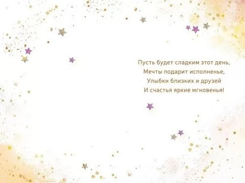 Формат А5 Текст внутри есть Материал изготовления Картон Отделка блестки в лаке золотые Количество в упаковке 10 Размер изделия ДхШ (мм) 182х122