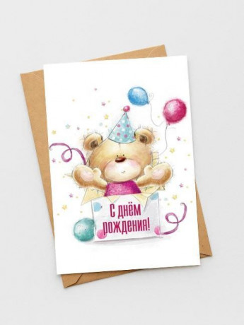 Открытка "Медвежонок. С днем рождения!" 10х15 см. БЦ-057/1/5