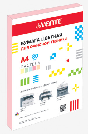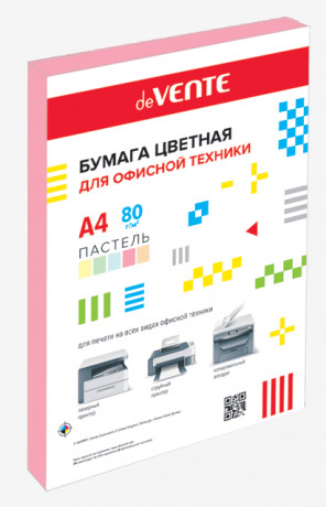 Бумага цветная офисная А4 50л. 80 гр розовая пастель в т/у плёнке deVENTE 2072703/40#