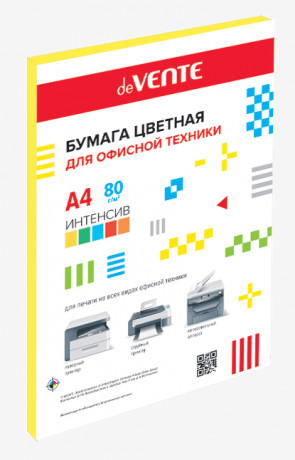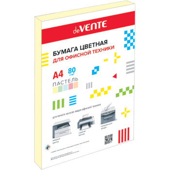 Бумага цветная офисная А4 50л. 80 гр желтый пастель в т/у плёнке deVENTE 2072701/40