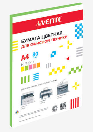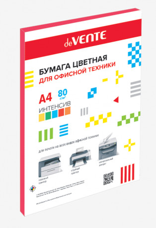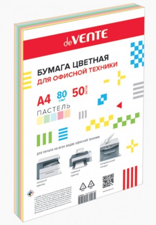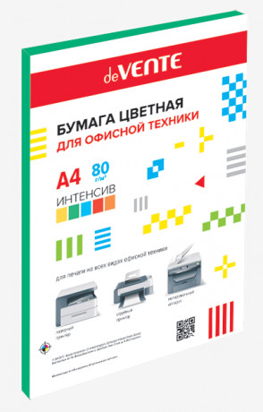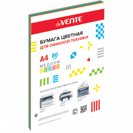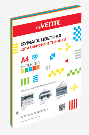 Бумага цветная офисная А4 50л. 80 гр ассорти интенсивных цветов deVENTE 2072249/1/40
