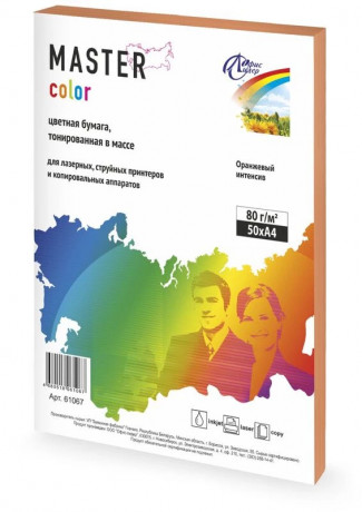 Бумага цветная офисная А4 50л. 80 гр интенсивный оранжевый Офис Лидер 61067/1/25