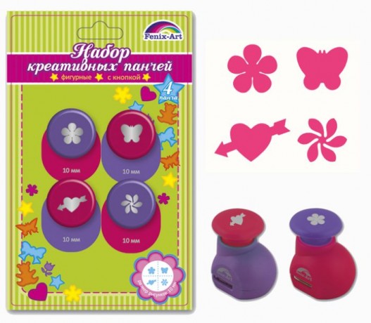 Панч-дырокол конгрев. с 4-ю смен. насад. 45815 СЕРДЦЕ, ТЮЛЬПАН, ЁЛКА, СНЕЖИНКА/12