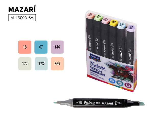 Маркер для скетчинга MAZARI FANTASIA Pastel colors 2 M-15004-6 набор 6цв./1/120