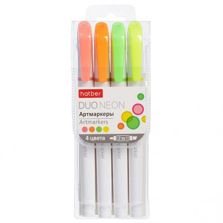 Набор Артмаркеров Hatber Duo NEON Мягкий наконечник 4 шт в прозрачном ПВХ-боксе HL_088146/1/432