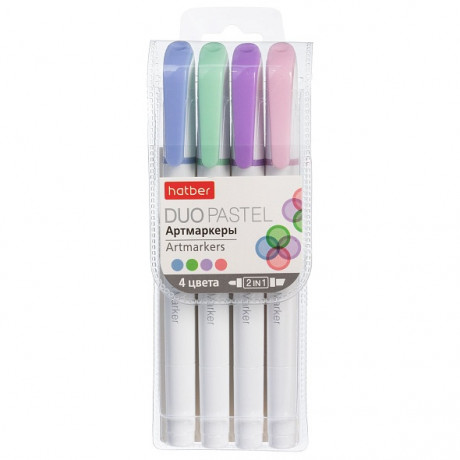 Набор Артмаркеров Hatber Duo PASTEL Мягкий наконечник 4 шт в прозрачном ПВХ-боксе HL_088145/1/432