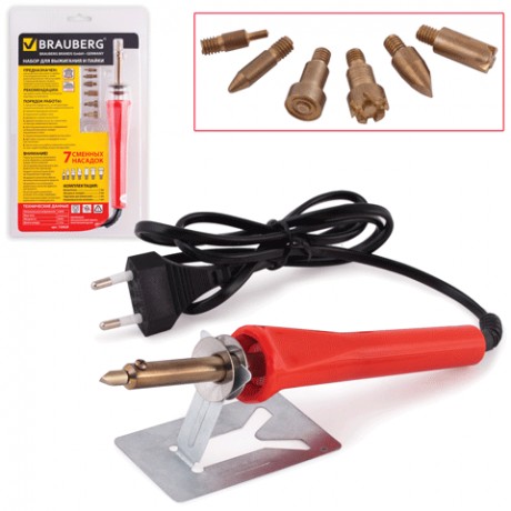 Выжигатель BRAUBERG, 7 насадок, красный, в блистере, 150620/1/10