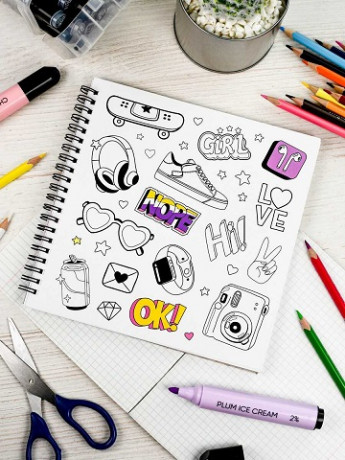 Альбом для творчества "АЛИСА" 7х24см, с контурами и наклейками, M-6543/24/48