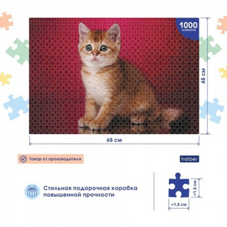 Пазл премиум-класса состоит из 1000 элементов (18х18 мм), дополнительно упакованных в прозрачный пакетик. Яркий красочный дизайн найдет своих почитателей среди настоящих любителей собирать мозаику. Для производства пазлов использован специально разработанный европейский картон для пазлов, толщина которого увеличена. Собирать элементы стало еще комфортнее! Упаковка: стильная подарочная коробка в термоусадочную пленку. Конструкция полностью изготовлена из жесткого картона. Размер: 33х21,3х5,2 см. Доверяя Hatber, вы покупаете лучшее!