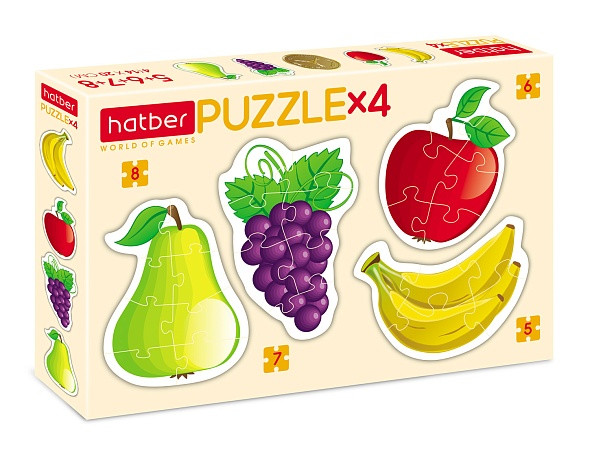 ПАЗЛЫ ФИГУРНЫЕ 5-6-7-8 элем. "4 картинки в 1 коробке" Яркие фрукты ПЗ5_28750/1/10