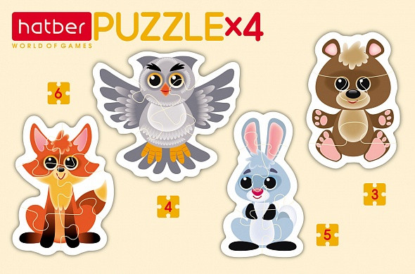 ПАЗЛЫ ФИГУРНЫЕ 3-4-5-6 элем. "4 картинки в 1 коробке" Лесные звери ПЗ5_28749/1