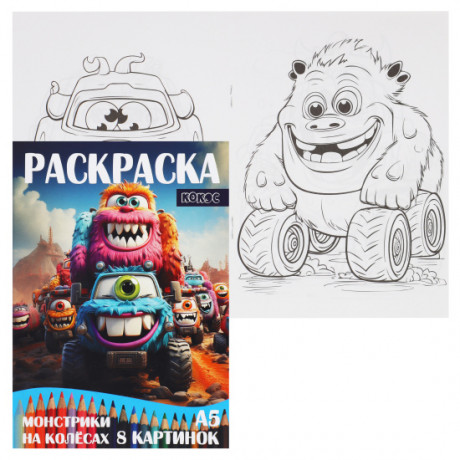 Раскраска А5 КОКОС "Монстрики на колёсах" 4 листа 241787/1/50