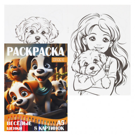 Раскраска А5 КОКОС "Веселые щенки" 4 листа 241789/1/50