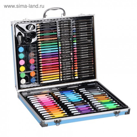 Набор состоит из: Набора цветных карандашей, акварельных красок с кистью, набора цветной пастели, восковых мелков, а так же широкий выбор цветных фломастеров. Для более удобной и продуктивной работы, в комплекте так же есть линейка, ножницы, ластик, степлер, точилка, корректор, кисть с полостью для воды, и простой карандаш. Широкий выбор канцтоваров для творчества и работы, стильный и удобный металлический портфель, отличный набор для опытного и начинающего художника