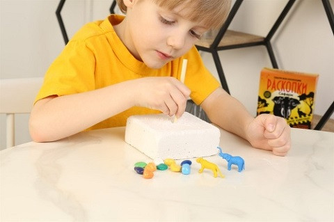 "Почувствуйте себя ученым, раскапывающим сокровища древности! В этот раз вы сможете принять участие в поисках доисторических насекомых. В вашем распоряжении окажется кусок спрессованного грунта, внутри которого скрываются две фигурки, а также целая россыпь других сокровищ. Раскопайте их с помощью специального инструмента, ничего не пропустив! В каждом наборе находится уникальный состав фигурок и сокровищ, так что вы никогда не знаете заранее, что попадется именно вам. Проведите ряд увлекательных научных раскопок и соберите свою коллекцию насекомых. В наборе: деревянный стек для дробления, окаменелый грунт с сокровищами