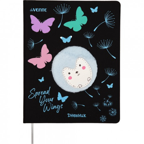 Дневник "deVENTE. Spread Your Wings" универсальный блок, 48 листов, белая бумага 80 г/м2, печать в 1 краску, твердая обложка из искусственной кожи, шелкография, аппликация из меха и искусственной кожи, цветная печать, цветной форзац, 1 ляссе