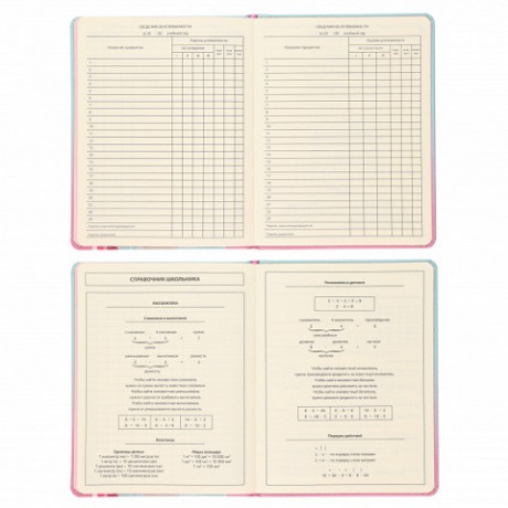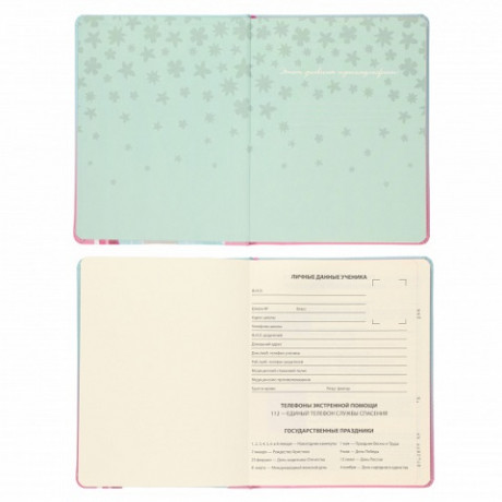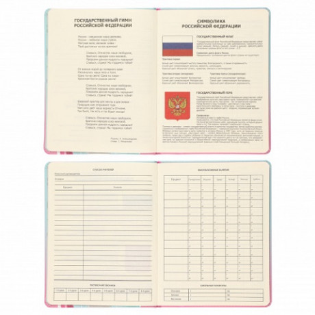 Школьный дневник для учащихся 1-11 классов. Твёрдая обложка 7Бц из искусственной кожи с поролоном, отстрочка, цветная печать, цветной срез. Внутренний блок — офсет тонированный, 1 краска. Плотность бумаги – 70 г/кв.м. Количество листов – 48. Универсальный блок включает 36 учебных недель, подходит при обучении и по четвертям, и по триместрам. Дневник содержит справочный материал для школьника и закладку-ляссе. Упакован в индивидуальный пакет.