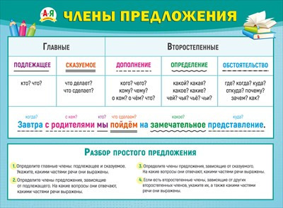 Плакат А2 "Главные и второстепенные члены предложения" 070.864/10