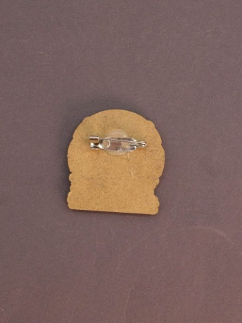 Значок выполнен из дерева с нанесением принта. На тыльной стороне застёжка в виде английской булавки. Каждый значок размещен на подложке и упакован в полиэтиленовый пакет с европодвесом. Произведено в России.