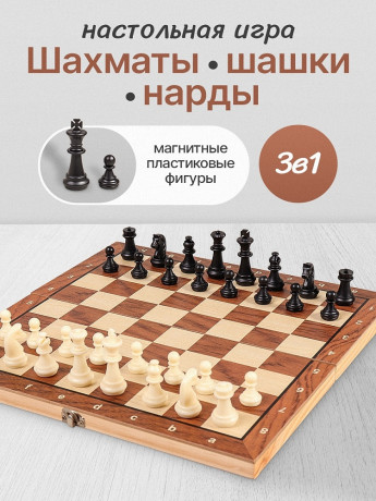 НАБОР 3 в 1 "Шахматы, шашки, нарды" (29х14.5х3см) шах.фиг.- пластик, шашки-дер ИН-9464/1/72