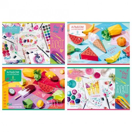 Альбом для рисования А4 8л., 100 г/кв.м, скрепка, Mix BG АР4ск8 10966/1/8