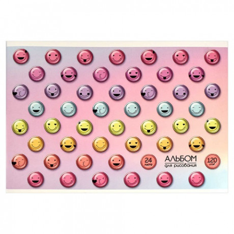 Альбом для рисования А4 24л., 120г/м, скрепка, СМАЙЛИКИ Феникс+ 66915/1/10/50