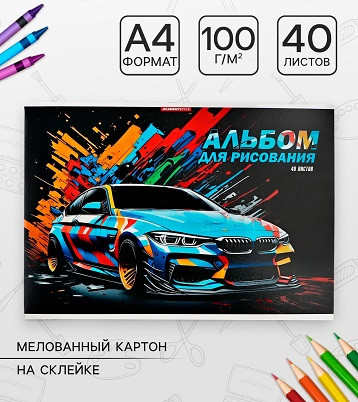 Альбом для рисования А4 40л., 100г/м, клей, Яркая тачка Academy Style 15402/1/8/32