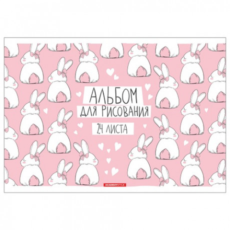 Альбом для рисования А4 24л., 100г/м, скрепка, Зайки Academy Style 11747/1/40