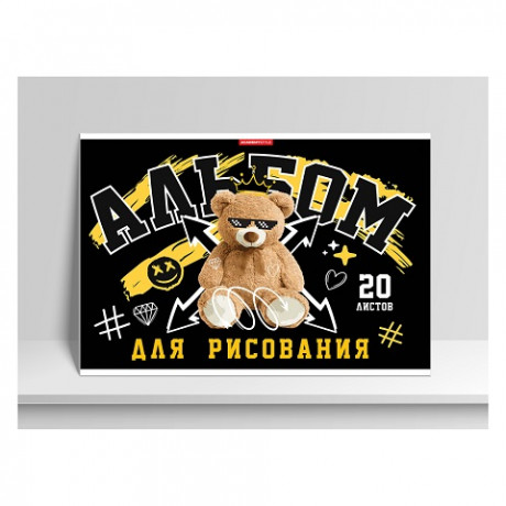 Альбом для рисования А4 20л., 100г/м, клей, Крутой мишка Academy Style 15396/1/48