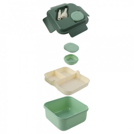 Комплектация: контейнер (3 отделения) , ложка. цвет зеленый размер 17,5*17,5*10 см материал пластик форма прямоугольный вес/объем 1600 мл