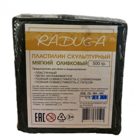 Пластилин скульптурный 500 гр. Радуга мягкий, оливковый ПСРЭ-ОМ-500/1 ПСРЭ-ОМ-500/1