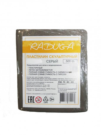 Пластилин скульптурный 500 гр. Радуга твёрдый, серый ПСРЭ-СТ-500/1 ПСРЭ-СТ-500/1