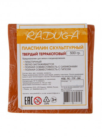 Пластилин скульптурный 500 гр. Радуга твёрдый, терракотовый ПСРЭ-ТТ-500/1 ПСРЭ-ТТ-500/1