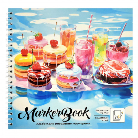 Альбом для рисования маркерами 195х195мм 40л., 110г/м, гребень, СЛАДОСТИ Феникс+ 65983/1/5/20