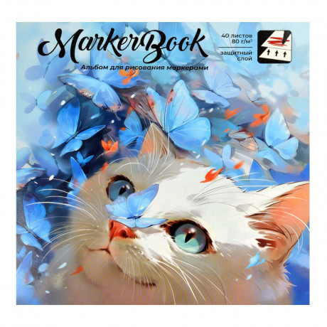 Альбом для рисования маркерами 195х195мм 40л., 80г/м, гребень, ЛУЧЕЗАРНЫЙ КОТ Феникс+ 68512/1/50