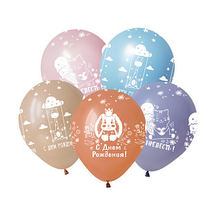 Шар воздушный 12'' БиКей "С Днем рождения!", пастель, (ЦЕНА ЗА ШТ.) Ч02835/1/25#