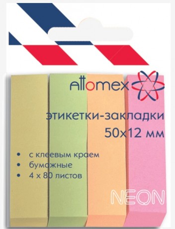 Закладки 50х12мм. 80л. 4бл. бумажные, ассорти неон Attomex 2011701/24/288