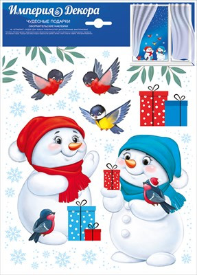 Оформительская наклейка "Снеговичок и подарки" 88.884/1