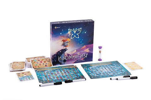 ОписаниеВ великом гримуаре воображения хранятся тайные заклинания изомагии. Если вы преуспеете в их изучении, то сможете вызывать удивительные формы на небе, воде или среди листвы деревьев. Опытные изомаги утверждают, что с помощью этих заклинаний можно даже украшать сны. Однако вы ещё только ученик-изомаг и вначале вам нужно научиться магическому рисованию. Каждый раз, когда вы рисуете волшебное заклинание, на игровом поле появляется таинственная форма. Расшифруйте, что именно предстало перед вашим взором, и очень скоро вы овладеете изомагией в совершенстве. «Изомагия» — семейная настольная игра, которая одинаково хороша и для детей, и для взрослых. Перед игрой можно выбрать один из четырёх режимов игры: - командный, где игроки разбиваются на команды по 2 человека и соревнуются между собой, - соревновательный, где игроки соревнуются между собой, - кооперативный, где всем игрокам нужно действовать сообща, - соло-режим для одного игрока, в котором итог партии зависит от количества использованных игроком