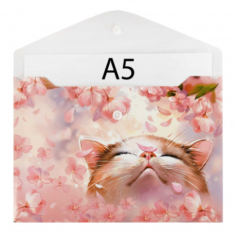 Папка для тетрадей на кнопке А5 "ЦВЕТОЧНЫЙ КОТ" 69016/1/12