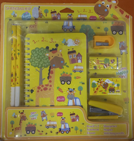 Набор канцелярский STUDY (блокнот, карандаш, ластик, точилка, степлер, скобы) M-3401*/1/26#