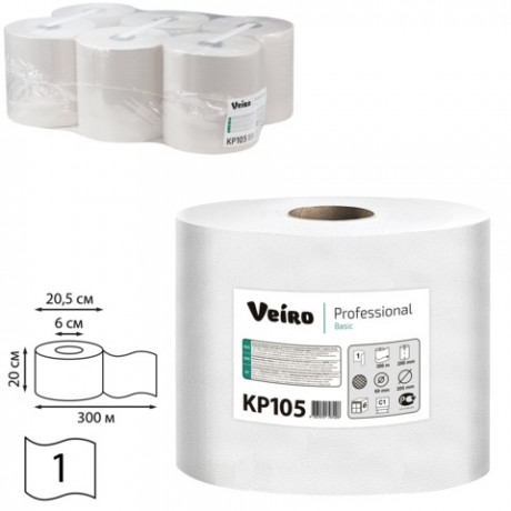 Полотенца бум. центр/вытяжкой 300м. VEIRO Professional (C1) компл 6шт. бел./КР 105/ 127098