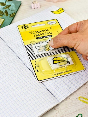 Закладки 25х45мм. 50л. 2бл. пластик, ассорти Феникс+ "БАНАН" 65197/1/48/384