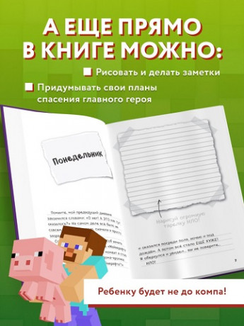Приключения Стива продолжаются! Он попал в очередной мир в «Майнкрафте» — где столкнулся со странниками края, обнаружил загадочные тоннели под своим новым домом, обрёл нового заму-учательного друга. А на десерт получил прекрасный сладкий торт! Приготовьтесь! Вас ждут тонны шуток, обалденные приключения, кролики и море веселья! Внутри книги есть пространство для творчества, где читатель может рисовать и помогать Стиву!