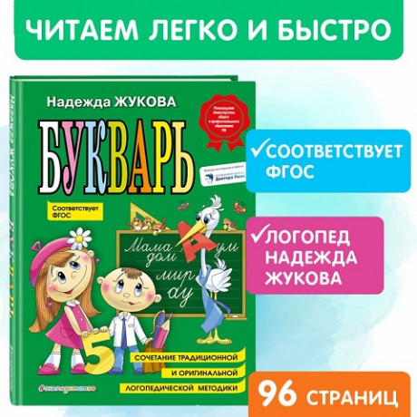 Для правильного чтения и письма, а также исправления ошибок в речи, для детей необходима только проверенная и прогрессивная, основанная на многолетнем опыте методика. Надежда Сергеевна Жукова — известный логопед, кандидат педагогических наук, приверженец классической педагогики. В своих книгах она использовала как исследования известных логопедов, так и самостоятельно разработанные оригинальные методики, проверенные временем. Имея большой практический опыт работы с особенными, «трудными» детьми, Надежда Сергеевна создала методику, доступную каждому, уйдя от «наукообразности» и «заумности». Все, кто когда-либо работал с ребенком по пособиям Надежды Жуковой, отмечают простоту подачи материала, легкость усвоения малышами и быструю обучаемость. «Букварь» — пример классического учебного пособия, по которому успешно выучились уже три поколения детей. Он полностью соответствует рекомендациям СанПин для детей дошкольного и младшего школьного возраста.